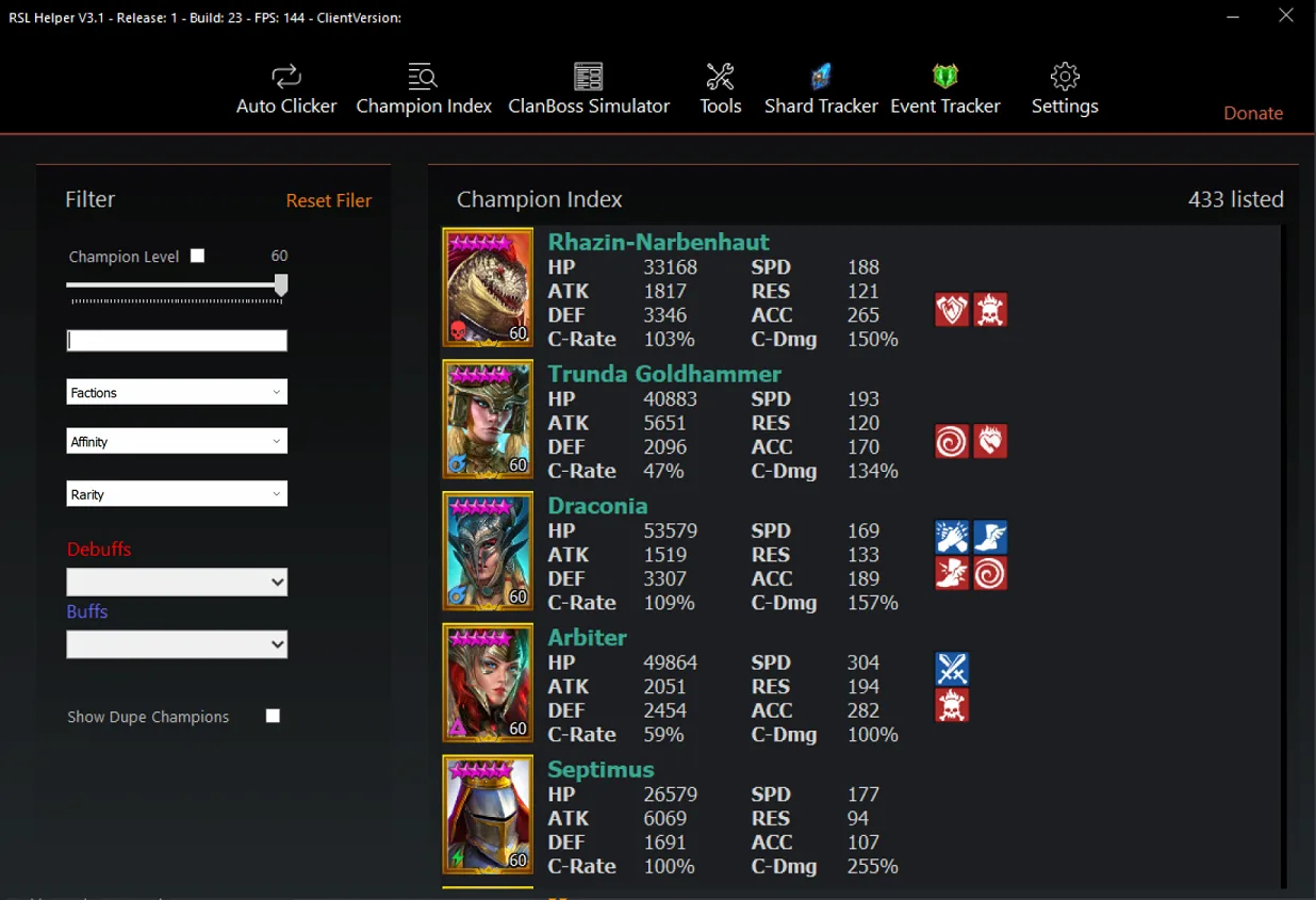 RSL-Helper is a free tool developed to streamline tasks in Raid Shadow Legends. It enhances your gameplay by providing valuable assistance, optimizing efficiency, and simplifying complex in-game activities.